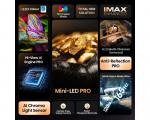 Ekran: | | Veličina ekrana: 100 inča (254cm) Rezolucija: 4K Ultra HD (3.840 x 2.160) Tip ekrana: ULED Pozadinsko osvetljenje: Mini LED Nativni kontrast: 5.000:1 Osvežavanje: 165Hz Odnos stranica: 16:9 Uglovi gledanja: 178 stepeni horizontalni Ostalo: 4K HDR Immersive, AI 4K Upscaler, AI HDR Upscaler, AI Scenario, AI Sports Mode, Anti-Reflective, Dolby Vision, Dolby Vision IQ, Game Bar, HDR 10, HDR10+, HDR10+ Adaptive, HLG, IMAX Enhanced, Infinity Vision, Local dimming, Odziv 6ms, Quantum Dot tehnologija, Total HDR Solution, Wide Color Gamut |