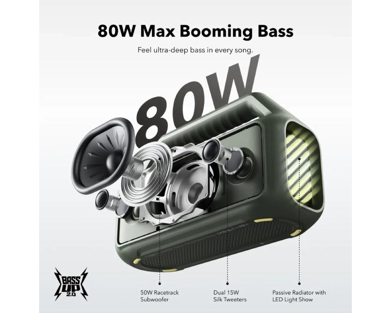 Soundcore Boom 2 80W 2.1 prenosivi bluetooth IPX7 zvučnik zeleni