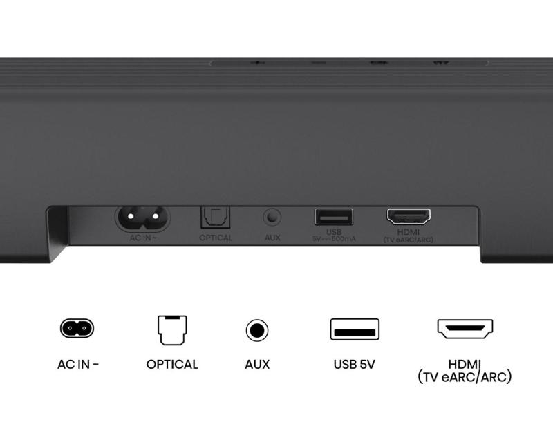 Osnovne karakteristike: | | Vrsta: Soundbar Sistem: 5.1 Tip: Aktivni Frekventni opseg: 40Hz - 20kHz Subwoofer - Snaga subwoofera: 180W Prečnik drajvera: 6.5 inča Soundbar - Snaga soundbara: 200W Žična povezivost - Žična povezivost: HDMI, S/PDIF, USB S/PDIF: 1x optički USB: 1 USB verzija: 1 x USB-A HDMI: 1 HDMI verzija: 1 x HDMI Ostali priključci: 1x DC ulaz Bežična povezivost - Bežična povezivost: Bluetooth Bluetooth verzija: 5.3 |